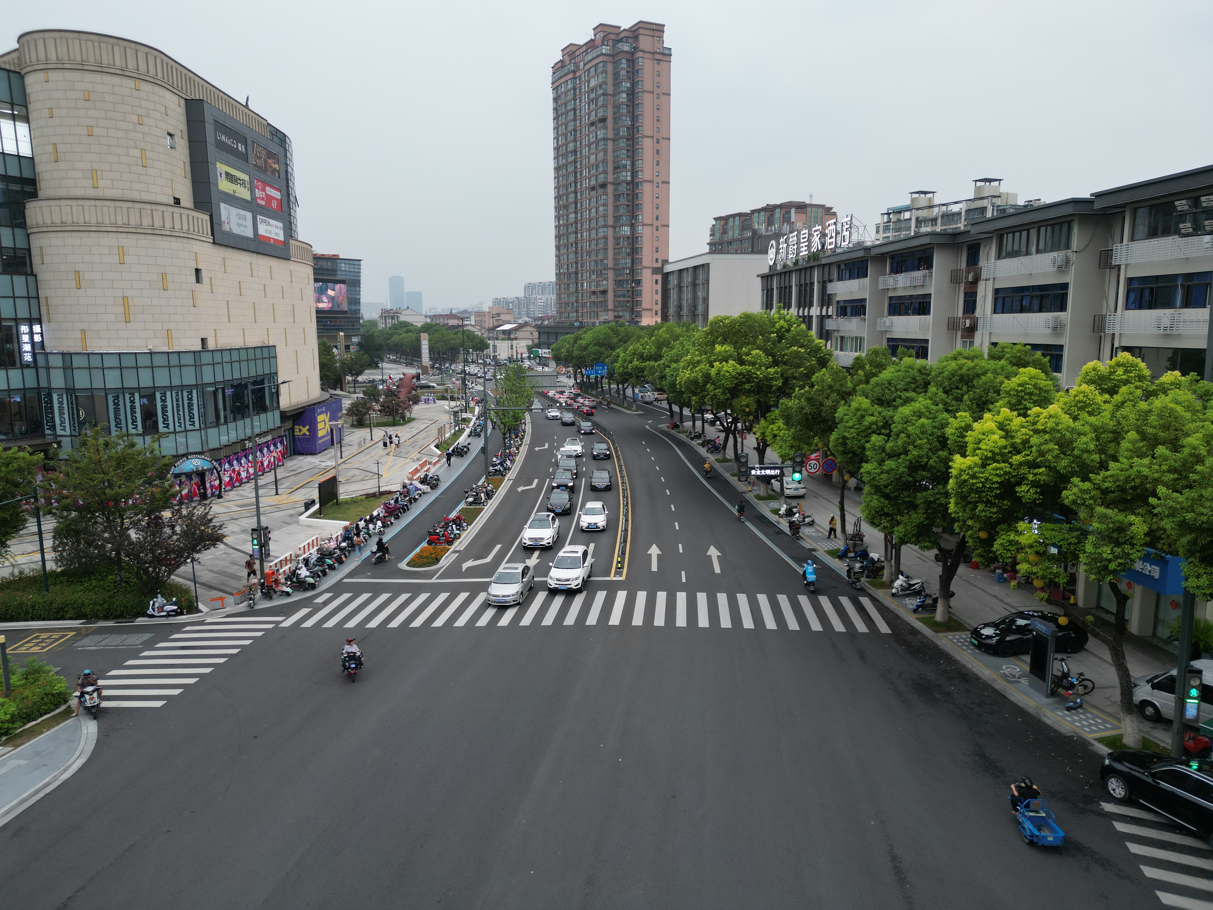 江陰市中心城區(qū)環(huán)城四路品質提升工程四條環(huán)路道路總長約 5.5 公里,主要施工內容為道路拓寬改造、景觀綠化、合桿合箱、城市家具及沿街建筑立面出新等。